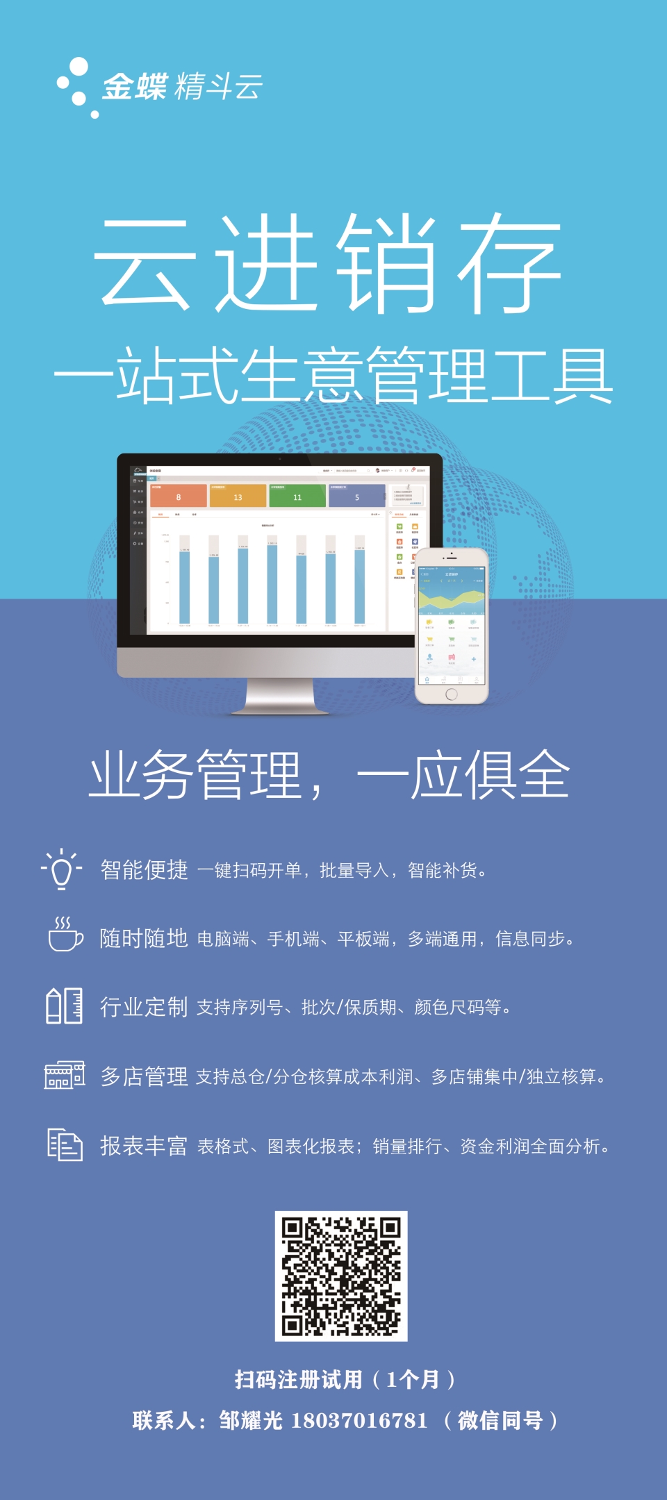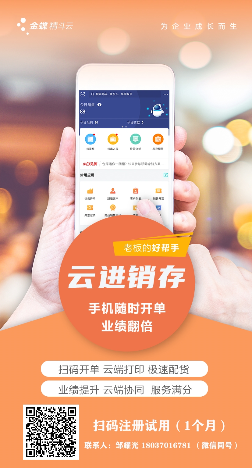 精斗云,金蝶旗下小微企業(yè)一站式云服務(wù)平臺(tái),基于互聯(lián)網(wǎng)技術(shù)及軟件交付模式創(chuàng)新,為企業(yè)提供3大經(jīng)營(yíng)服務(wù)(小程序商城 智慧門店 2B訂貨)、2大管理服務(wù)(財(cái)務(wù) 進(jìn)銷存)、1大解決方案(新零售全渠道解決方案),助力企業(yè)打造智能化、移動(dòng)化、一體化的經(jīng)營(yíng)管理體系。目前已有超過100萬(wàn)家小微企業(yè)選擇在精斗云上高效管理生意。