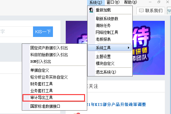一、此工具位于主菜單的菜單欄-系統(tǒng)-系統(tǒng)工具-審計(jì)導(dǎo)出工具,使用時(shí)請(qǐng)找到對(duì)應(yīng)路徑并單擊工具進(jìn)行使用