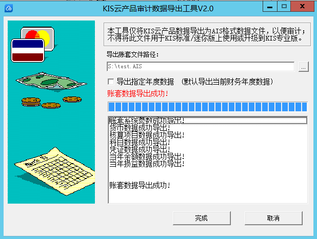 一、本工具導(dǎo)出的格式文件僅支持審計(jì)用,不支持在其他KIS軟件中使用