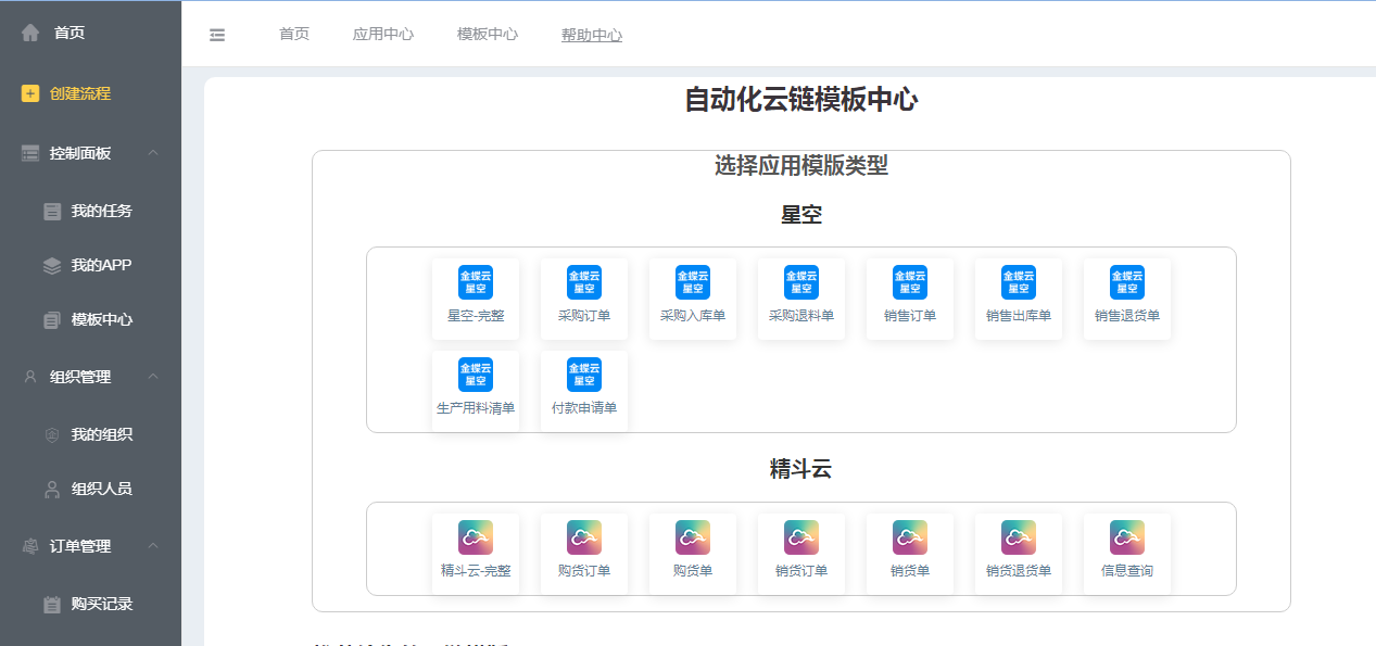 2、進(jìn)入【應(yīng)用中心】選擇應(yīng)用【精斗云云會計】,在進(jìn)入后的界面選擇對應(yīng)的執(zhí)行動作【服務(wù)到期提醒】,按操作提示依次操作授權(quán)賬號,選擇賬套ID,設(shè)置服務(wù)到期前的天數(shù),即完成精斗云云會計的配置