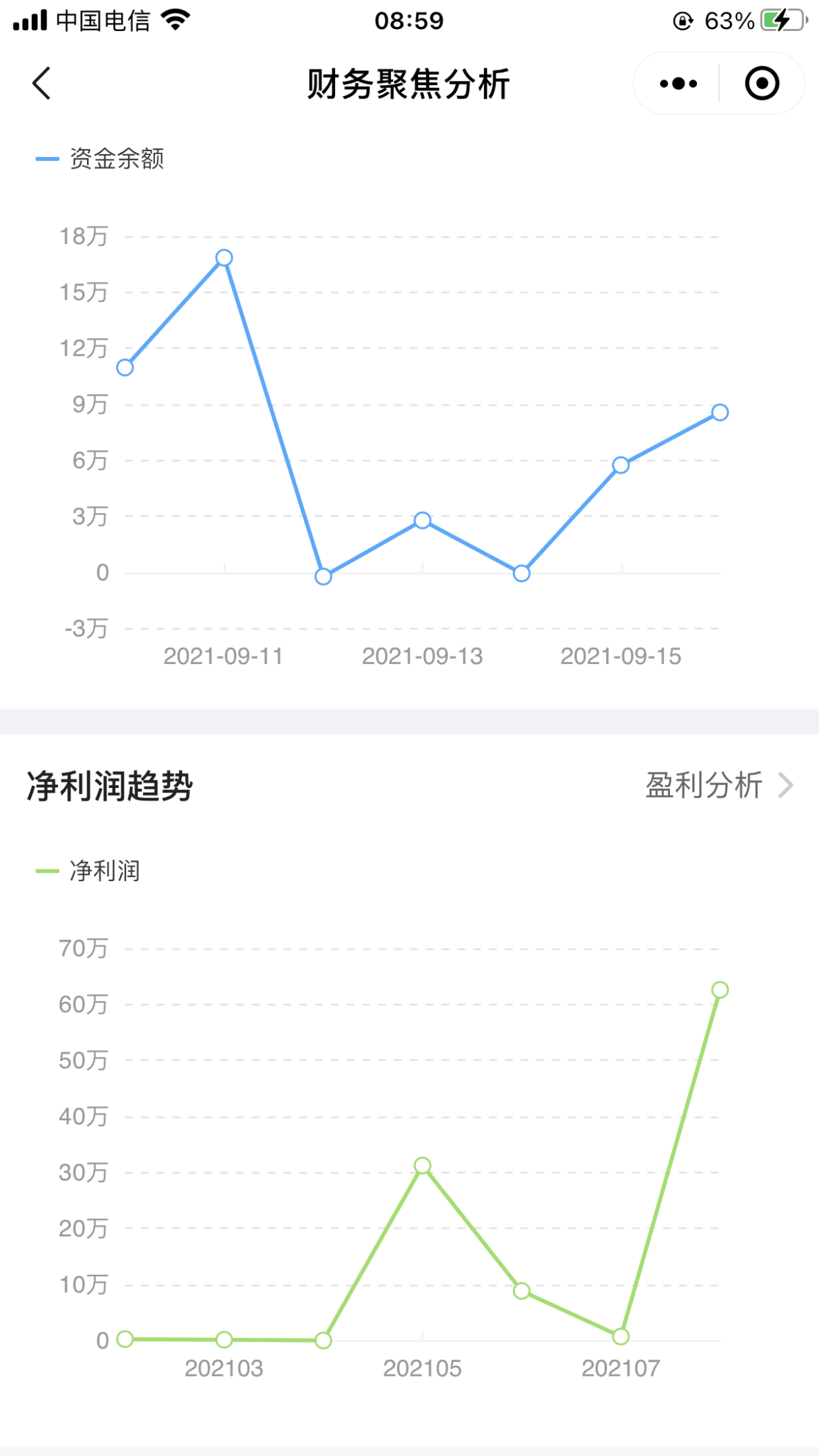 使用金蝶云·星辰后,英姐在微信上打開“老板參謀”小程序,就可以直觀的看到企業(yè)的資金余額和利潤分析,能實(shí)時(shí)了解企業(yè)資金的流向,每個(gè)賬號還剩多少錢,每個(gè)賬戶的流水明細(xì)情況,同時(shí)能對企業(yè)未來的資金情況進(jìn)行預(yù)測。