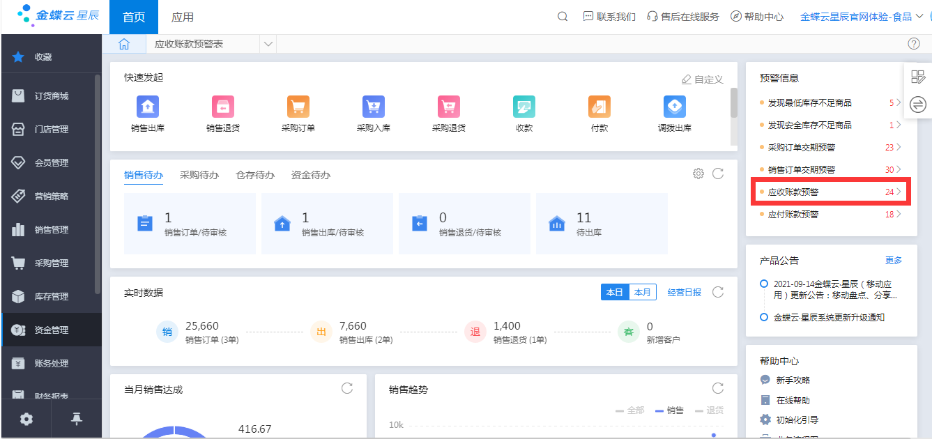 通過金蝶云·星辰的信用管理和預(yù)警功能,鴻興業(yè)大大提升了應(yīng)收賬款回款速度和效率。首先重點(diǎn)關(guān)注回款時(shí)間,客戶賬款到期前一周會自動進(jìn)行預(yù)警提醒,讓銷售員提前進(jìn)行應(yīng)收賬款催收。
