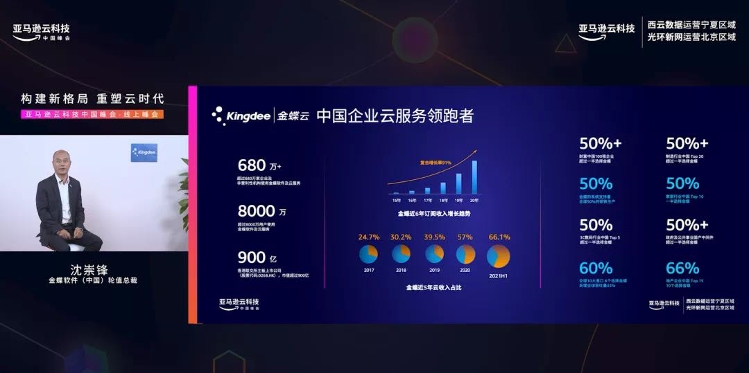 一年一度的行業(yè)內(nèi)頂級峰會(huì)亞馬遜云科技峰會(huì)2021年9月9日-14日于線上召開,本次峰會(huì)對焦5大主題演講、8大技術(shù)、9大行業(yè)細(xì)分領(lǐng)域,并開設(shè)多場次行業(yè)分論壇,聚合國內(nèi)外尖端技術(shù)講師和業(yè)內(nèi)領(lǐng)袖及余萬名構(gòu)建者共襄盛會(huì)。大會(huì)覆蓋人群2.5萬,主論壇邀約金蝶、保時(shí)捷、阿迪達(dá)斯、西門子、涂鴉智能5家亞馬遜云合作伙伴出席,金蝶中國輪值總裁沈崇鋒應(yīng)邀出席并發(fā)表演講。