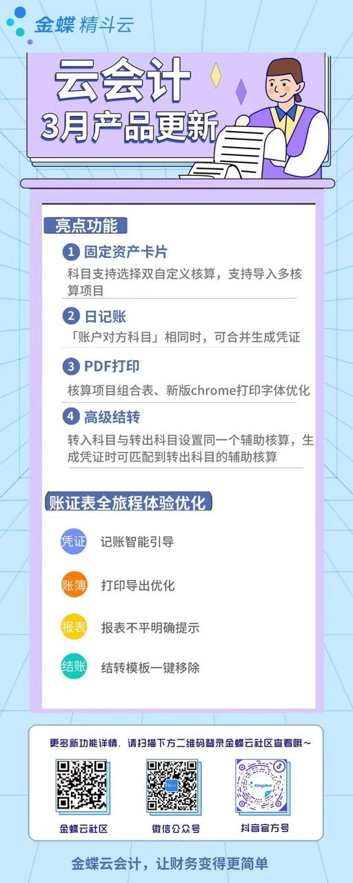 金蝶精斗云·云會(huì)計(jì)3月產(chǎn)品新特性快來(lái)看看您的需求更新了嗎?具體更新功能如下圖 海報(bào):