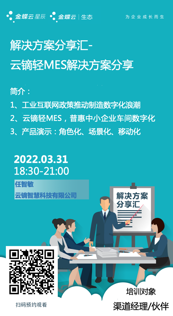 2022.3.31傍晚,洛陽金蝶軟件 金牌授權(quán)伙伴 洛陽驍智軟件科技有限公司 組織金蝶員工線上學習解決方案分享匯-云鏑生產(chǎn)報工解決方案分享