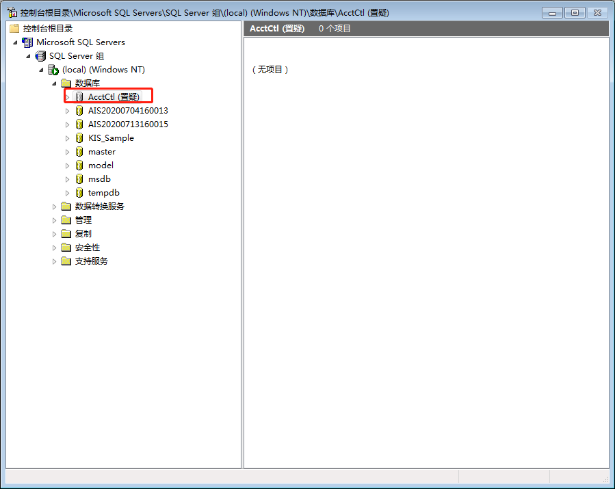 1、進入完整版數(shù)據(jù)庫,如果是SQL 2000 數(shù)據(jù)庫服務(wù),啟動打開 SQL manager 綠化完整包,進入數(shù)據(jù)庫,找到 “ AcctCtl”,鼠標右鍵-刪除
