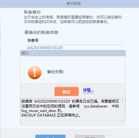 金蝶KIS專業(yè)版、KIS商貿(mào)版 賬套數(shù)據(jù)超大且備份失敗,處理方法