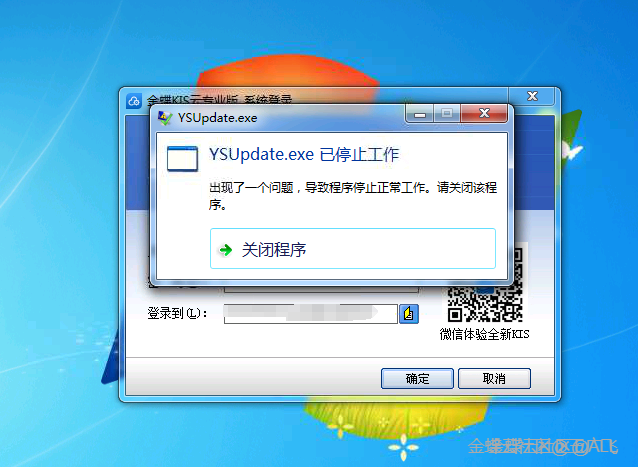 登錄就提示YSUpdate.exe已停止工作,關(guān)閉程序之后可以正常進(jìn)入賬套.
