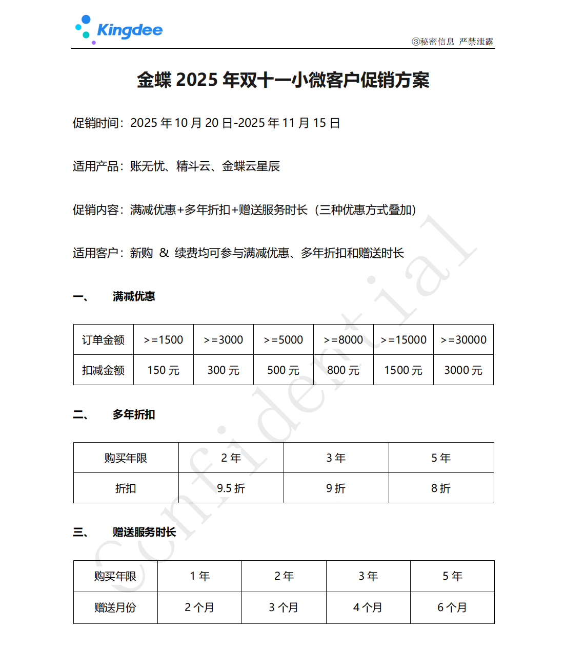 2025年10月20日前夕,洛陽金蝶經(jīng)銷商-洛陽驍智軟件 從金蝶總部市場渠道部和網(wǎng)站通知獲悉,在2025年雙11來臨前,金蝶總部發(fā)文,精斗云、云星辰、賬無憂 新老客戶 新購、續(xù)費 促銷活動;