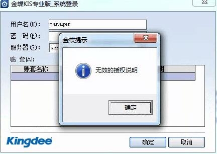 洛陽金蝶軟件-金蝶KIS專業(yè)版服務器登陸金蝶提示無效授權